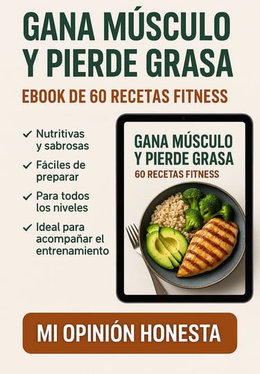 Por eso quiero compartir contigo una opción sencilla, directa y realista que puede ayudarte a mejorar tu cuerpo, tu salud y tu energía diaria sin estrés: el ebook “Gana Músculo y Pierde Grasa: 60 Recetas Fitness".
